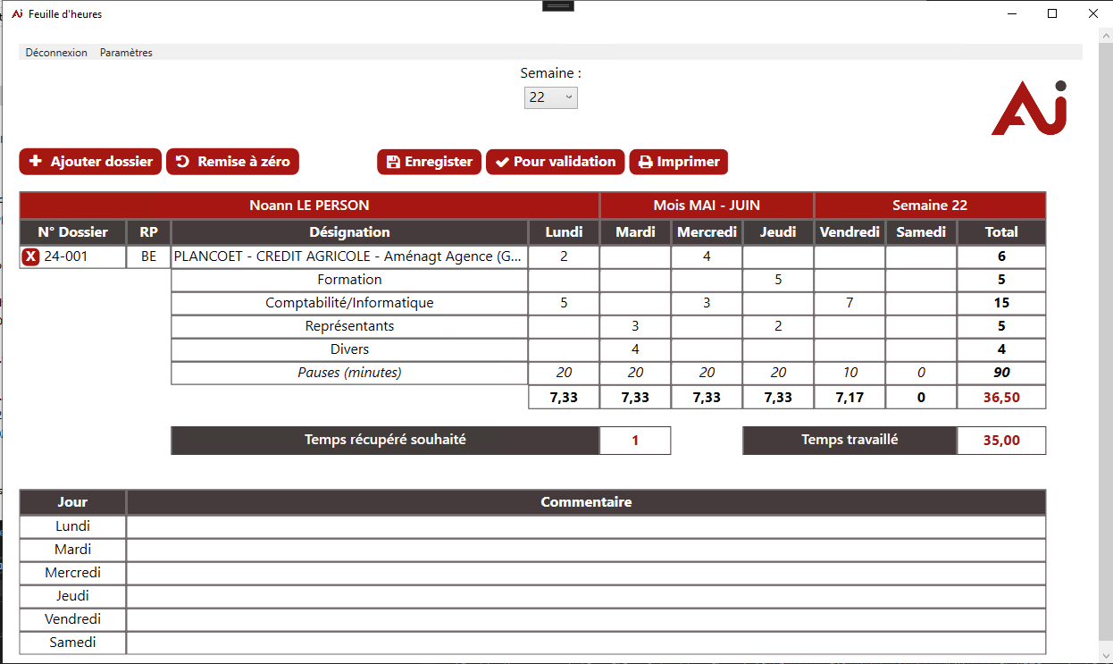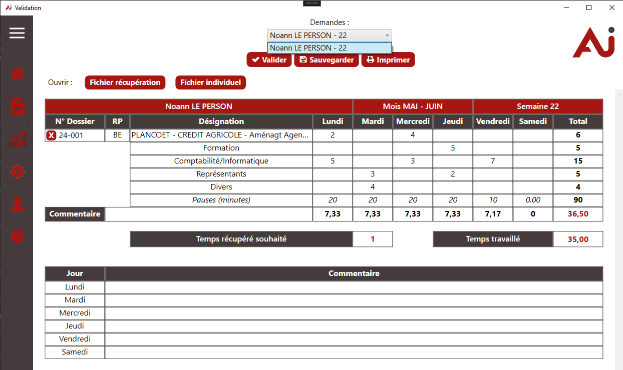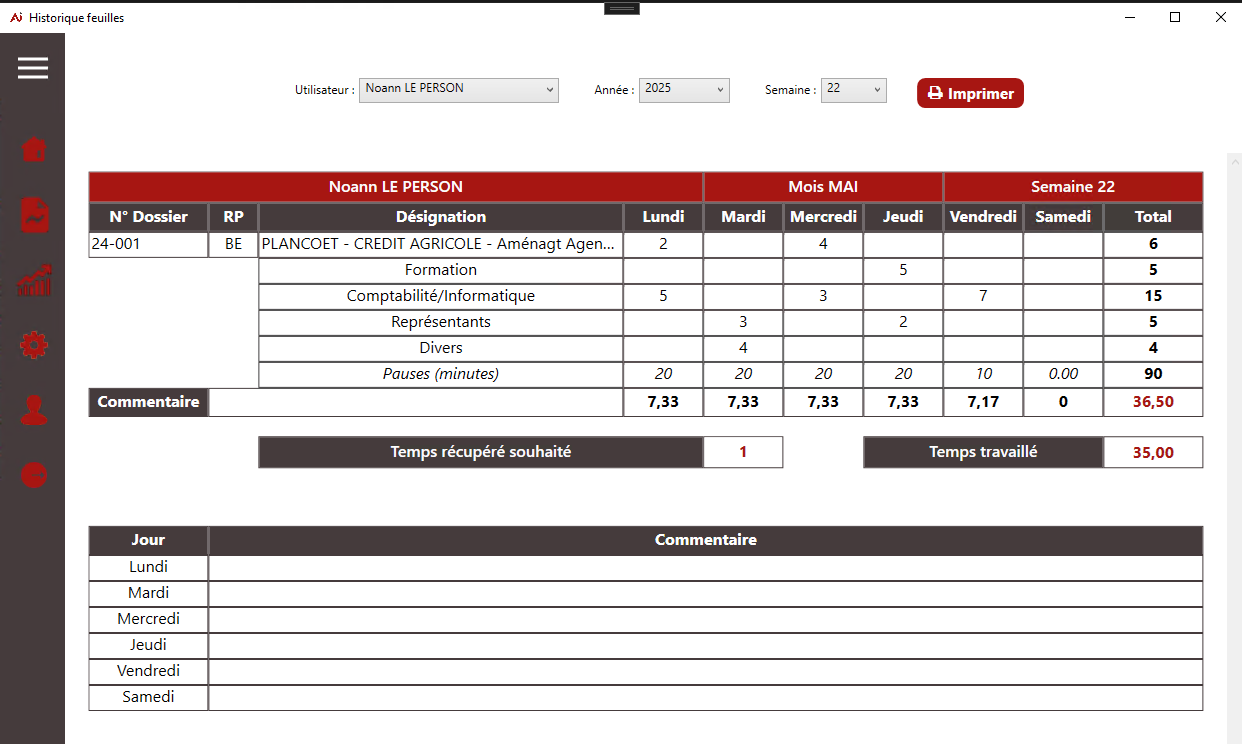 Mission : Création d'un logiciel permettant la gestion des feuilles d'heures